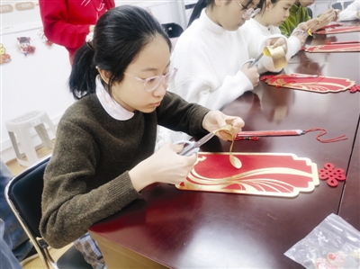 “簌簌、簌簌!”随着剪刀开合,金色布屑如细雪般轻盈飘落。在红桥区邵公庄街咸阳社区活动室内,十余名青少年正屏息凝神,指尖捏着特制的尖头小剪,在柔软的金色彩布上游走。不过半晌,一匹神气活现的生肖马轮廓渐显。“看!我的‘马上有福’快完成了!”女孩肖逸禛兴奋地压低声音向同伴展示。