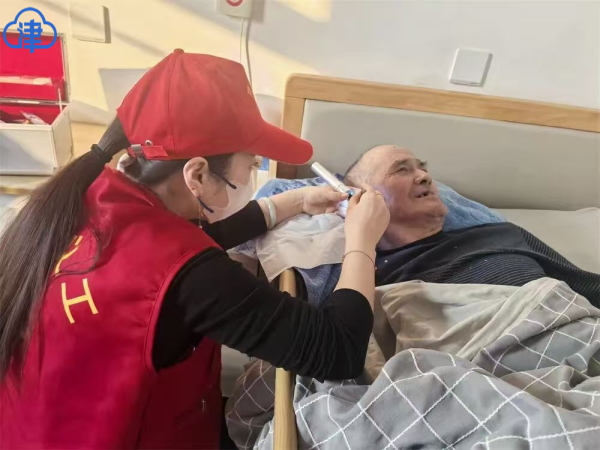 采耳时,老人们闭目凝神,在义工轻柔的操作下,舒缓着日常的疲惫,脸上满是惬意。“您觉得这个力度怎么样,耳朵疼不疼?”在给老人采耳过程中,义工们仔细观察着老人的表情,询问老人的感受,再根据老人们的需求及时调整采耳方式,努力让老人舒服、满意。每给一位老人做完采耳服务,志愿者都会让老人知晓自己耳道内的健康情况,并给老人讲解耳朵日常自我护理常识。采耳后,老人们普遍感觉听力明显提升了,耳朵里也不痒了,他们满意地点头,连声道谢。 修剪指甲环节更是细致入微,义工们蹲在老人身前,一手轻握老人的手,一手拿着指甲刀慢慢修剪,生怕让老人有一丝不适,还不时询问老人是否满意,尽显贴心。 除了周到、贴心的服务,陪伴交流同样温情脉脉。义工们围坐在老人身边,与他们促膝长谈。有的倾听老人讲述过往的岁月故事,有的耐心回应老人的家常唠叨,有的为老人讲解当下的新鲜事儿,一句句关切的问候、一次次真诚的回应,承载着对老人们健康长寿、喜乐常安的美好期许,养老院里不时传来阵阵欢声笑语。