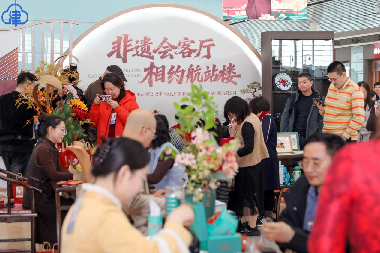 天津北方网讯:2月6日上午,天津滨海国际机场T2航站楼热闹非凡。天津航空“天津文旅畅游号”与奥凯航空“天津文旅畅享号”主题航班双双正式启航,同步举办的还有“非遗会客厅”媒体春节开放日活动。