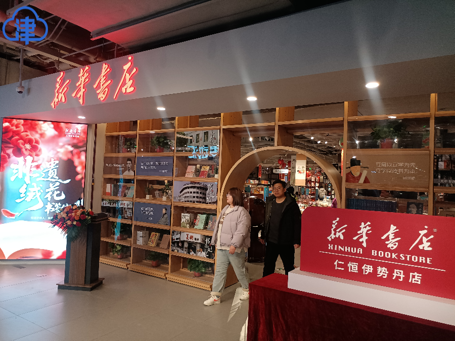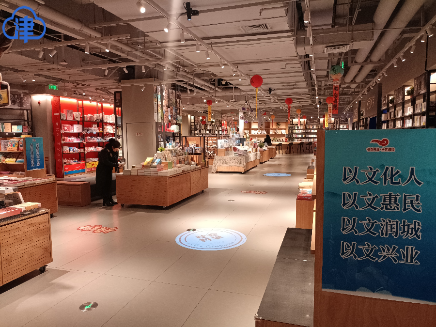 新店坐落于南开区东马路仁恒伊势丹A馆B2层,营业面积近1300平方米,突破传统书店经营模式,打造集图书展销、文化传播、休闲阅读于一体的沉浸式文化空间。店内划分图书、文创非遗、文化休闲三大区域,陈列14000余种、30000余册图书,覆盖党政、社科、少儿等多个品类,并特设“津版精品图书专柜”;非遗区汇聚杨柳青年画、泥人张彩塑等津味文创,休闲区创新引入VR体验专区,推出“阅读+VR”特色套餐。