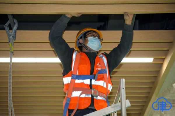 走进地铁8号线5标梅江道东站施工区域,地下车站内一派忙碌场景。十米深的作业面里,施工人员正分工协作进行公共区装修,有人托举着铝扣板精准对位,有人手持电钻固定龙骨,还有工人蹲在地面细致铺设瓷砖,水泥砂浆的搅拌声、工具的敲击声交织成一曲奋斗的乐章。“春节期间我们不停工,主要推进站内装修和附属结构施工,光这一个站就有百余名建设者留守,一天能完成约100平方米铝扣板安装,争取把进度往前赶。”中国铁建大桥局天津地铁8号线一期工程5标项目工区副经理赵阳的声音,在施工现场格外清晰。