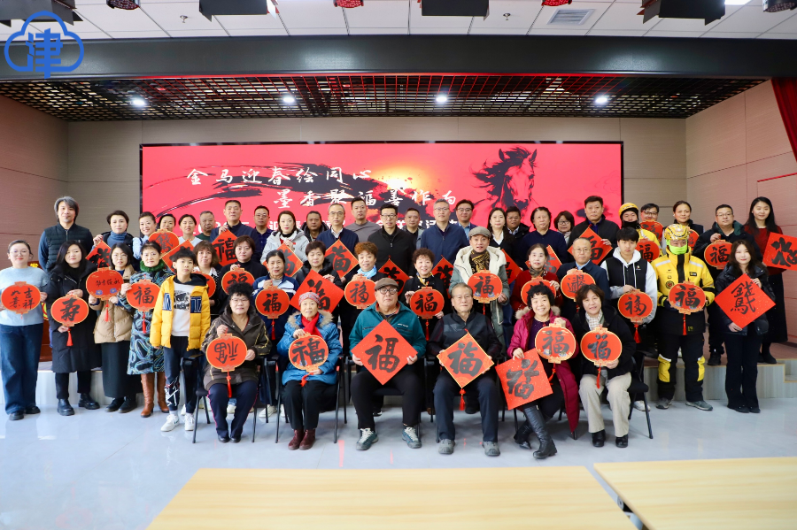 2月8日,由中国民主建国会天津市委员会、河西区委统战部、河西区总工会指导,民建市委会书画院、民建河西区委员会、河西区职服中心主办,挂甲寺街道、河西区新联会、河西区职工服务公益联盟承办的“金马迎春绘同心 墨香聚福善作为”——2026年河西区“迎春送福”笔会联谊活动在河西区工人文化宫成功举办。