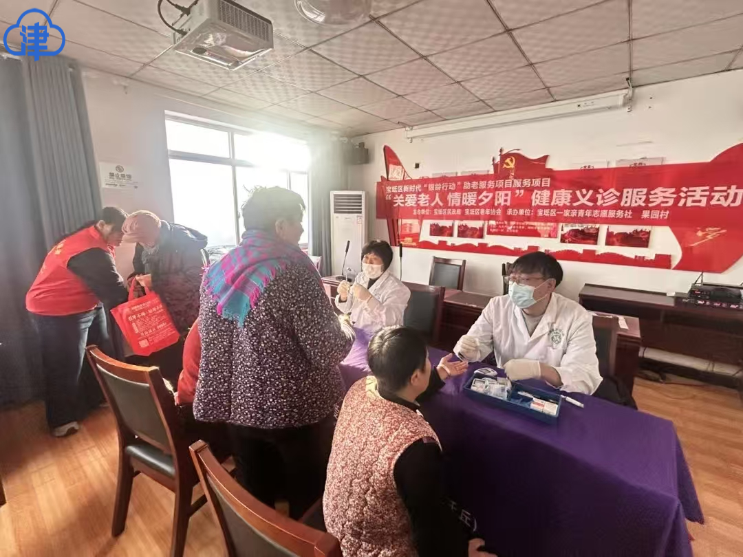 “大娘,您的血压有点高,记着按时吃药”……为切实解决村里老年人就医不便、健康咨询渠道有限的问题,近日,宝坻区一家亲青年志愿服务社志愿者走进潮阳街道果园辛庄村开展“关爱老人情暖夕阳”健康义诊服务活动,为村里的老人们提供免费量血压、测血糖、口腔检查等服务,把健康关怀送到老年人家门口。 活动当天,志愿者们早早来到果园辛庄村党群服务中心,他们与村干部分工协作,全程引导老人有序排队登记,对行动迟缓、腿脚不便的老人主动上前搀扶、全程陪同完成各项检查,让老人们无需费力等候。