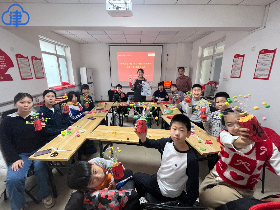 2月9日,和平区南营门街道世昌里社区活动室里暖意融融、笑语不断,一场以“分类焕新‘瓶’安花 绿色环保贺新年”为主题的环保宣传活动热闹开场。没有烟花爆竹的喧嚣,却有创意手工的缤纷;没有传统年味的烟火气,却有绿色文明的新风尚。社区宣讲员徐帅化身“环保科普官”,孩子们变身“环保小使者”,在知识宣讲、互动问答、倡议朗读、创意手工四大环节中,将垃圾分类与禁燃禁放理念融入新春氛围,用一场沉浸式实践点亮无烟新年。