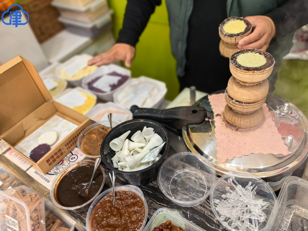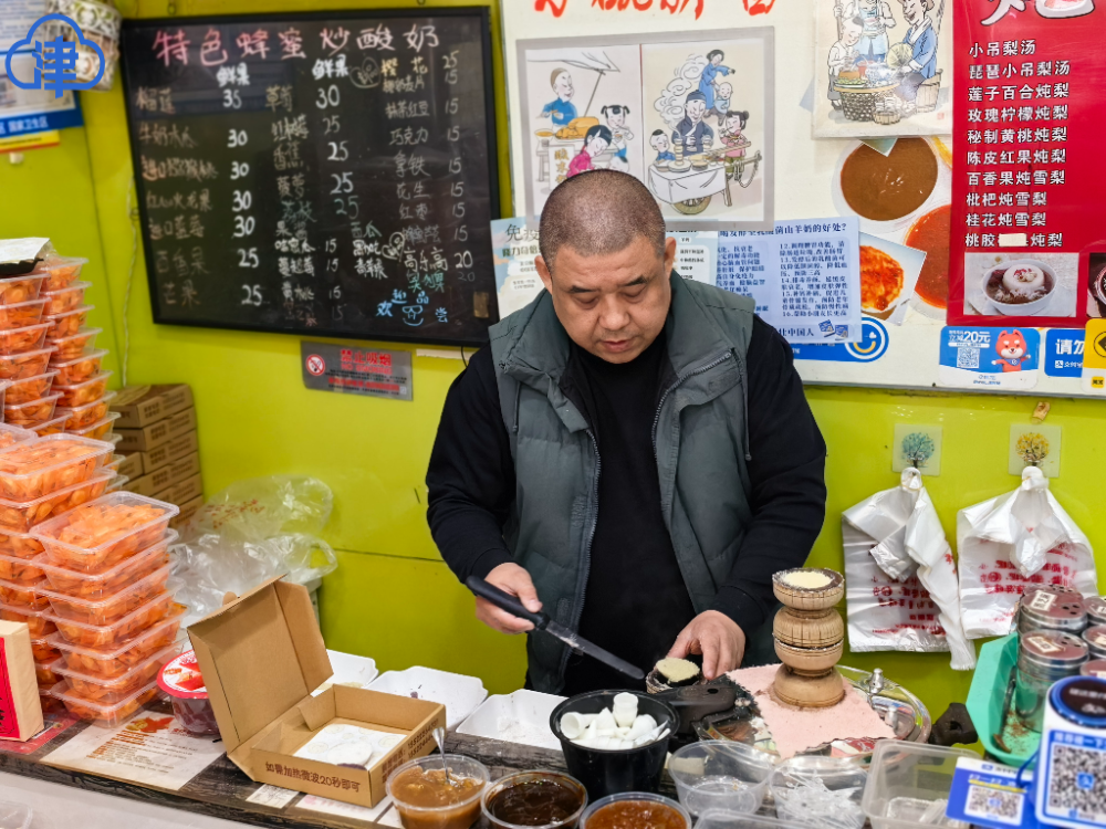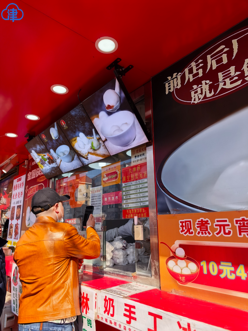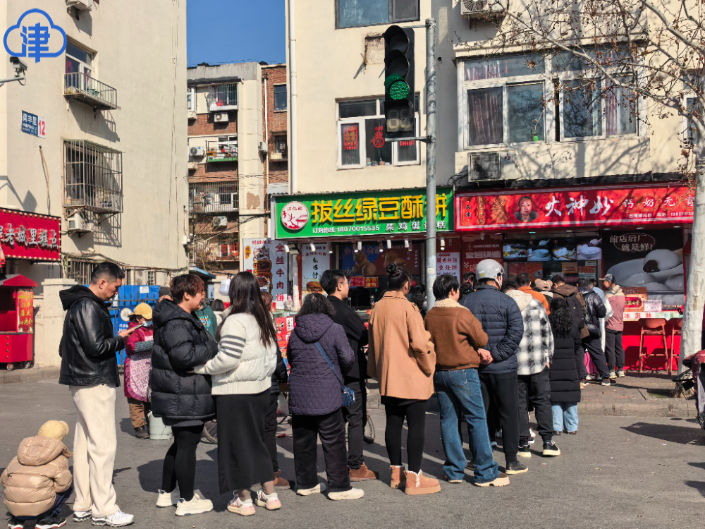 北京女孩刘慧杰的手机里播放着“南开文化旅游”公众号里的地图语音:“如果您第一次来不知道买点什么,那就选一个最长的队伍跟着排吧。”她抬头张望,目光落在火神妙钙奶元宵窗口前——那里,队伍已经拐了个弯。售货员一边装袋一边叮嘱:“回去不论吃不吃,先放冰箱冷冻!”往西走100多米,“津味呗好吃”熟梨糕的高压锅呲呲冒着蒸汽,店主张杨一个人忙得脚不沾地,嘴上应着顾客:“好嘞,这就给您做!”