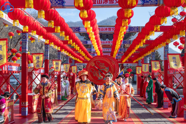 盘山景区举办“福满盘山·冰雪奇缘”春节游园会,将皇家文化、冰雪资源与民俗演艺结合。舞狮贺岁、快板评书添年味,投壶、飞花令等传统游戏受青睐,皇家NPC巡游、五路神仙送福等沉浸式互动亮点纷呈,让游客在“京东第一山”尽享冰雪与新春交融的独特乐趣。