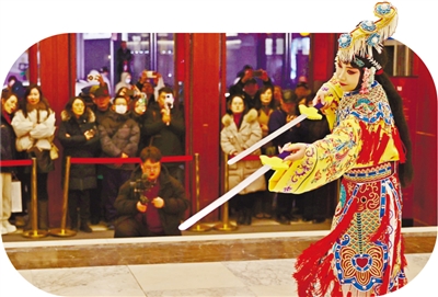 大年初二,九秩风华的中国大戏院,一开门便有连台好戏。上午,一楼大厅内,古筝演员崔可凡以一曲《象王行》开场,与随后清雅柔美的《茉莉芬芳》一刚一柔,将古筝的独特韵味与艺术张力展现得淋漓尽致。她说:“不少观众都是偶然路过驻足聆听。这种不期而遇的美好格外动人,让大家在逛街购物的间隙,邂逅一段悦耳旋律,再带着满心欢喜继续出发。”