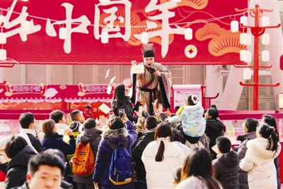 来自街域内市、区级非遗队伍宝辇、法鼓、高跷、舞龙、舞狮等十余道花会队伍近300人进行表演,观摩群众预计近万人。
