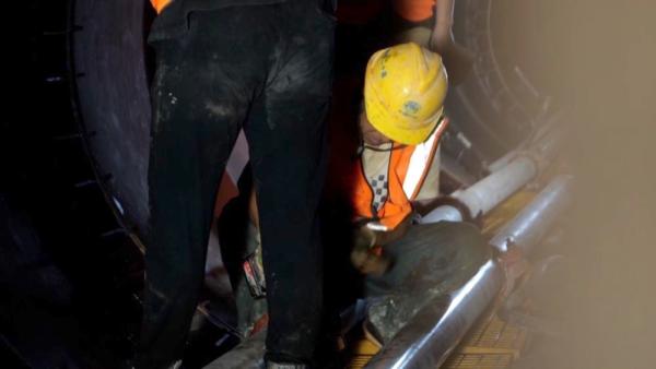在40米深的全海底作业面,项目三圆咬合顶管试验施工正在进行,为下一步工程的全面开展提供了有力支撑。