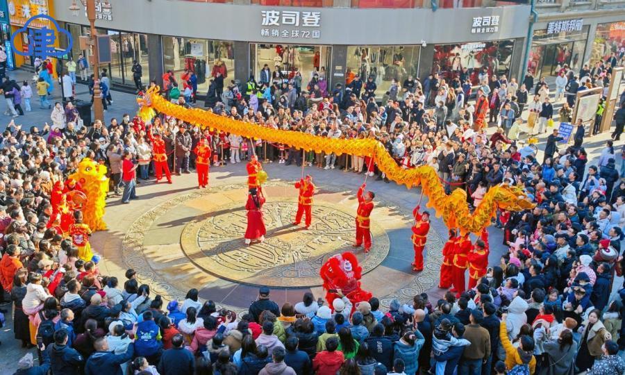 和平金街、佛罗伦萨小镇、万象城等重点商圈张灯结彩、人流如织。街头巷尾红灯笼高挂,舞龙舞狮、新春市集等民俗活动轮番上演,浓浓的年味扑面而来。各大商场内“马上有钱”生肖主题装饰随处可见,“恭喜发财”的音乐声此起彼伏,市民游客摩肩接踵,购物热情空前高涨。
