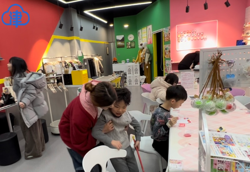 “一开始那几天,确实没什么人,我们就通过抖音等短视频平台进行宣传,告诉大家店里可以做哪些手工艺、价格如何,还有小机器人陪伴互动,慢慢吸引了几百人关注,元旦假期那几天,店里突然就客满了,大多是家长带着孩子来玩儿,还有许多年轻人结伴而来。”