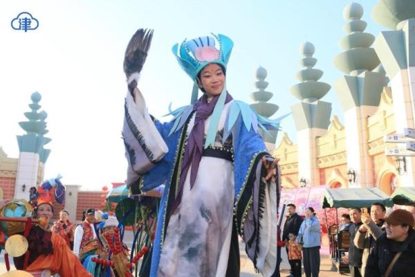 南开区双鼓(古)地区红灯笼高悬、年味氤氲,“古街寻味中国年,非遗百戏闹新春”系列文旅活动精彩上演,舞龙舞狮、汉服展演、非遗曲艺等活动吸引着天南海北的游客慕名而来。和平区五大道推出手作市集、民俗巡游等特色活动,金街商圈潮品国货与老字号礼包相映成趣,街区内人流如织、暖意融融,尽显都市文旅的时尚韵味与烟火气息。宝坻区了凡公园“宝地迎春·福耀京畿”花灯展、“龙凤和鸣”飞行表演点亮新潮体验。武清区南湖公园彩灯摇曳,多彩演艺与新春市集交织成亲子欢场。河北区北宁公园新春游园会,让游客沉浸式感受怀旧年味。河东区津一PARK新中式市集,舞狮腾跃带来新气象。泰达航母“盛宴启新春?骏跃展宏图”新春国潮嘉年华、方特欢乐世界“哏儿都闹新春”主题活动、欢乐谷“津门喜市”和大型无人机灯光秀,广受亲子家庭青睐。