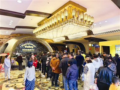 春节住宿市场持续火爆,度假区依托成熟的酒店集群,持续优化度假服务与产品供给,让游客玩得尽兴、住得舒心。度假区内温泉酒店推出“新年泡头汤”主题产品,联动景区打造一价全包畅玩套餐,财神送福、小丑互动、舞蹈演绎轮番上演,新春氛围感拉满;火烈鸟港湾酒店拥有1300平方米中庭火烈鸟景观,还原火烈鸟天堂“纳库鲁湖”的生态场景,酒店主打亲子特色,房型设计贴心,萌宠主题房、儿童乐园、手工DIY等深受家庭客群青睐,成为亲子出游家庭的首选。市民李先生表示,今年春节来光合谷体验特别好,这里的汤泉种类多,环境雅致惬意,园区内到处张灯结彩,年味特别浓。一家人既能泡温泉放松身心,又能逛乐园、看演出、体验年俗,还能逛动物园和小动物互动,一家老小的需求都满足了。真没想到家门口的度假区能做得这么好,明年还会来。