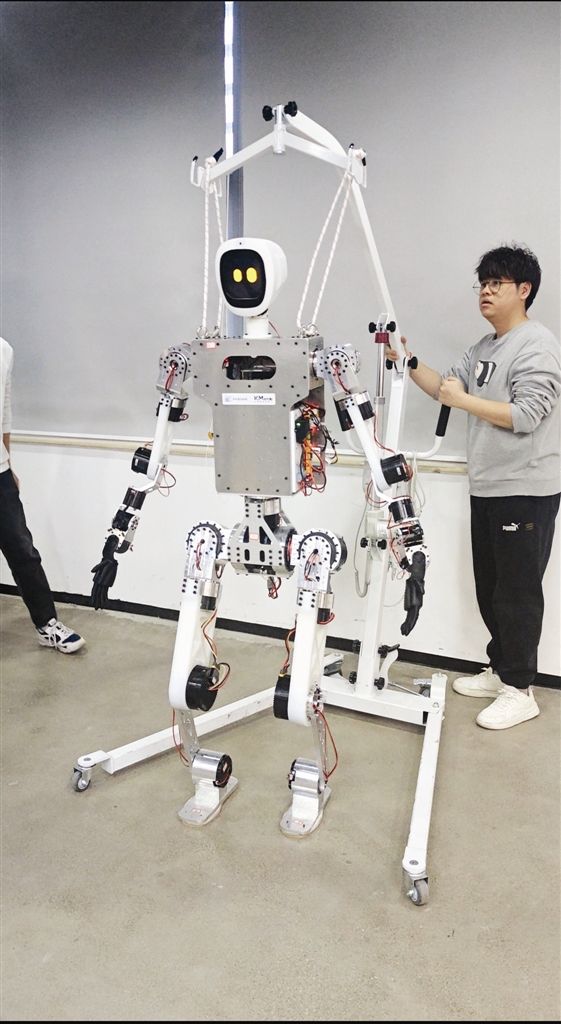 在展厅的中间,一名工作人员操作着训练支架,架子上悬挂着一台双足人形机器人,它在支架的保护下正晃晃悠悠地练习步态,活像一个正在学习走路的小朋友。“这是我们的第二款产品诸葛木MX2,身高已经达到了1.75米,各零部件采用了直驱设计,搬运负载能力达到20公斤左右,较目前市面上主流双足人形机器人负载能力约提升了一倍,在搬运作业上有明显优势。”木牛流马CEO封彦舟告诉记者,他们已经在津南区投建了约2000平方米的厂房,核心零部件的生产已启动,4月中旬可实现机器人整机投产,“届时我们会把现有的诸葛木MX2投入产线参与批量生产同款机器人。”