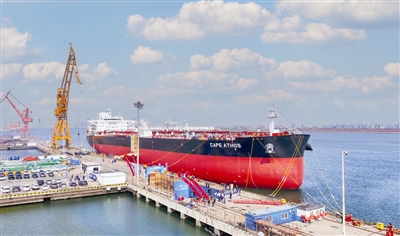 内容提要:日前,中船大连造船大船天津(以下简称大船天津)为开普航运公司建造的11.5万载重吨成品油船“开普阿托斯”号命名交付。