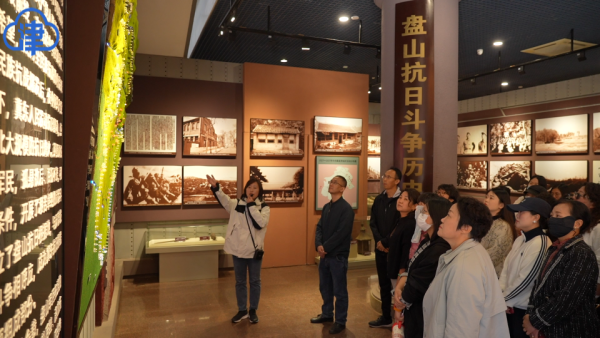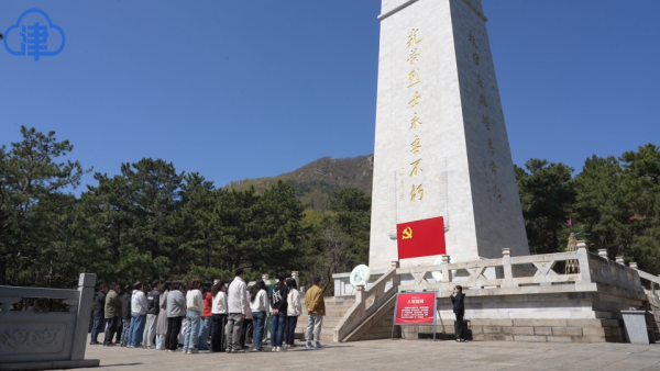 在纪念碑前,党员代表号召大家赓续红色血脉。随后,全体党员重温入党誓词,铮铮誓言在陵园上空久久回荡。宣誓结束后,全体人员缓步绕行,瞻仰烈士纪念碑,并参观盘山革命纪念馆。在优秀讲师的讲述下,一件件珍贵文物、一幅幅历史照片,生动再现盘山抗日根据地的烽火岁月。