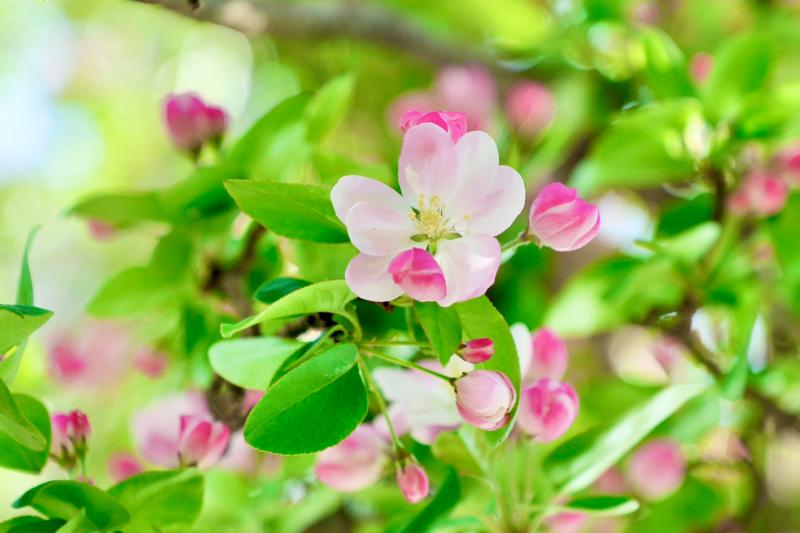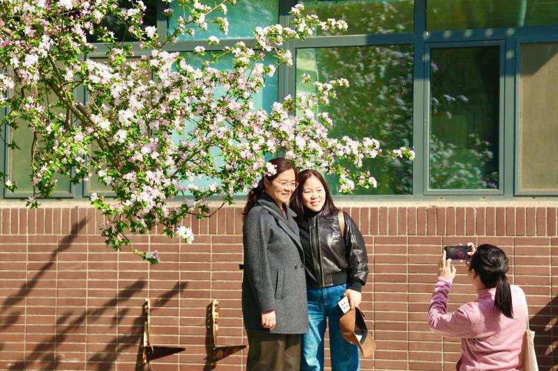 校园里除了花香绵长的西府海棠,还有梨花海棠、贴梗海棠、垂丝海棠,以及金黄蜂、奈微利等珍稀品种。大部分的海棠树龄约有40年,校园内水利馆附近的海棠树已有70余年历史。