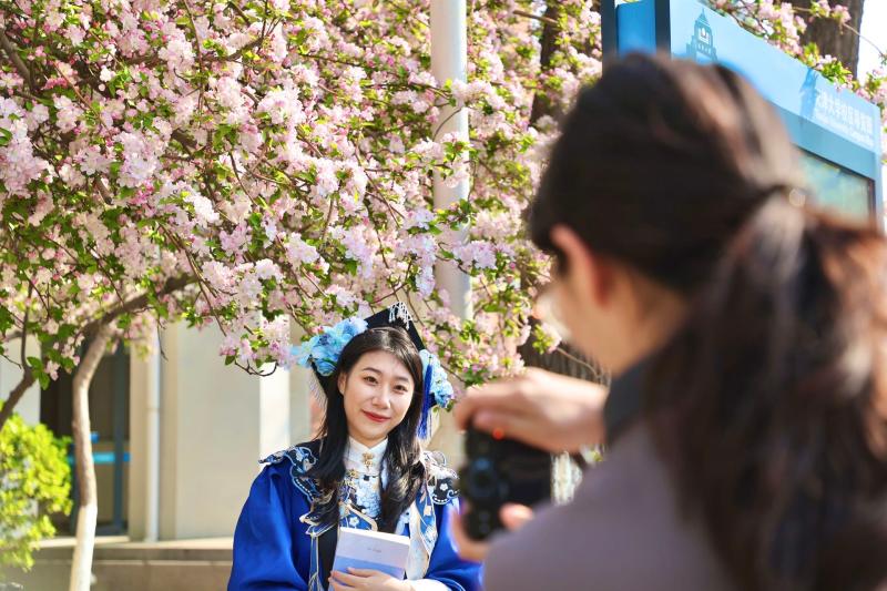 天津北方网讯:连日来,天津大学卫津路校区海棠花陆续绽放,繁花成廊,粉白相间、春意盎然。据悉,天津大学卫津路校区现有海棠800余株,多集中于铭德道两侧。
